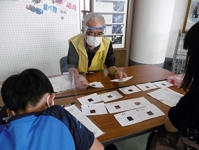 業高校生が、それぞれの子どもたちに付いて、手作業のコツやムズカシイとこ