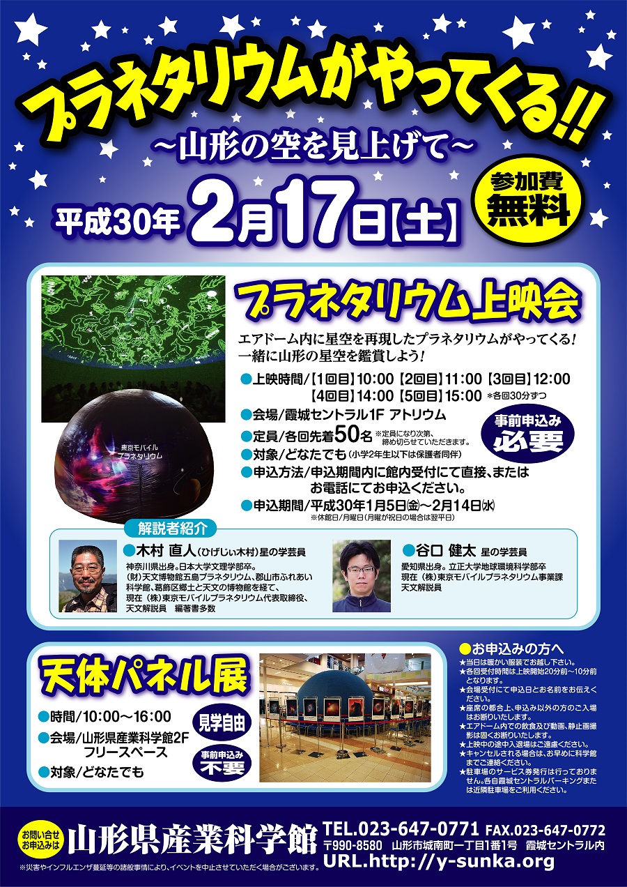 【2月17日(土)】エアドーム内に星空を再現したプラネタリウムがやってくる!