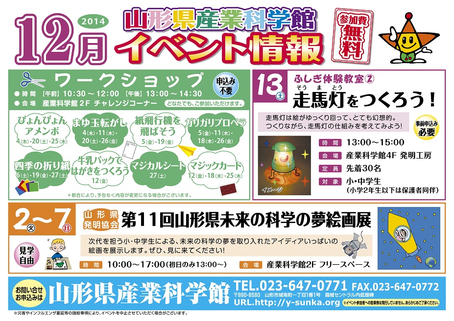 12月イベント[第11回山形県未来の科学の夢絵画展、他]
