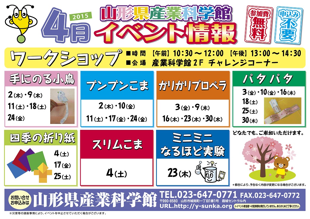 4月イベント[ワークショップ:四季の折り紙,ガリガリプロペラ、他]