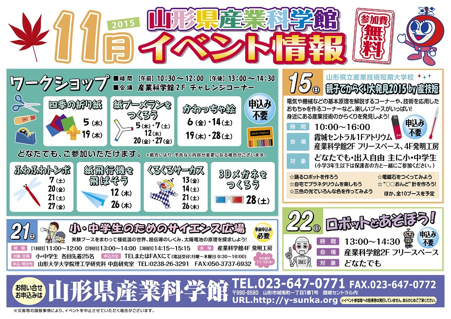 11月イベント[親子でからくり大発見2015 by産技短、他]