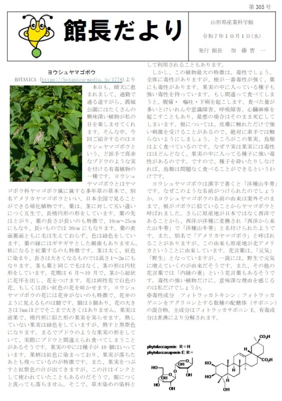 10月1日(水)発行の「館長だより」第305号を掲載します