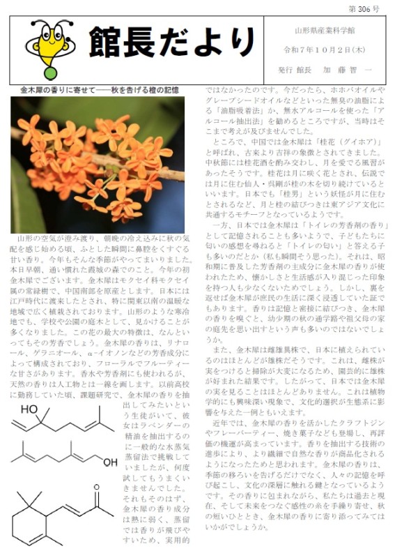 10月2日(木)発行の「館長だより」第306号を掲載します