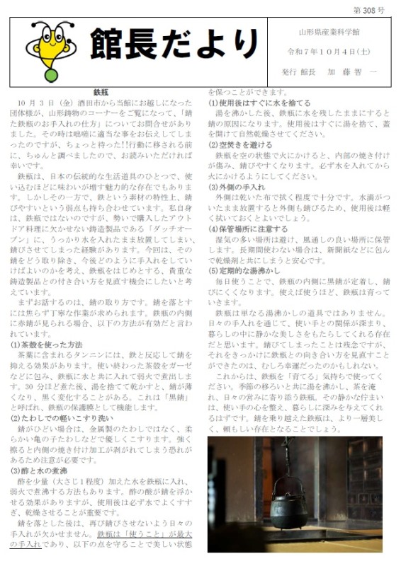 10月4日(土)発行の「館長だより」第308号を掲載します