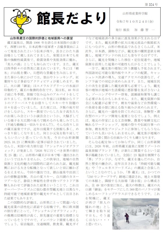 10月24日(金)発行の「館長だより」第324号を掲載します