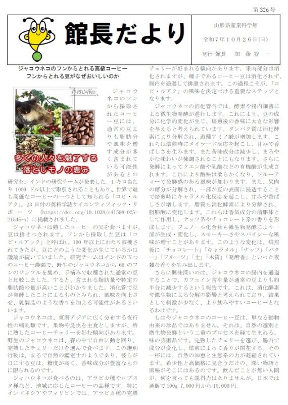 10月26日(日)発行の「館長だより」第326号を掲載します