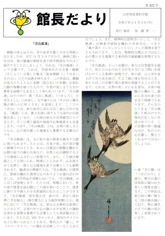 11月3日(月)発行の「館長だより」第332号を掲載します