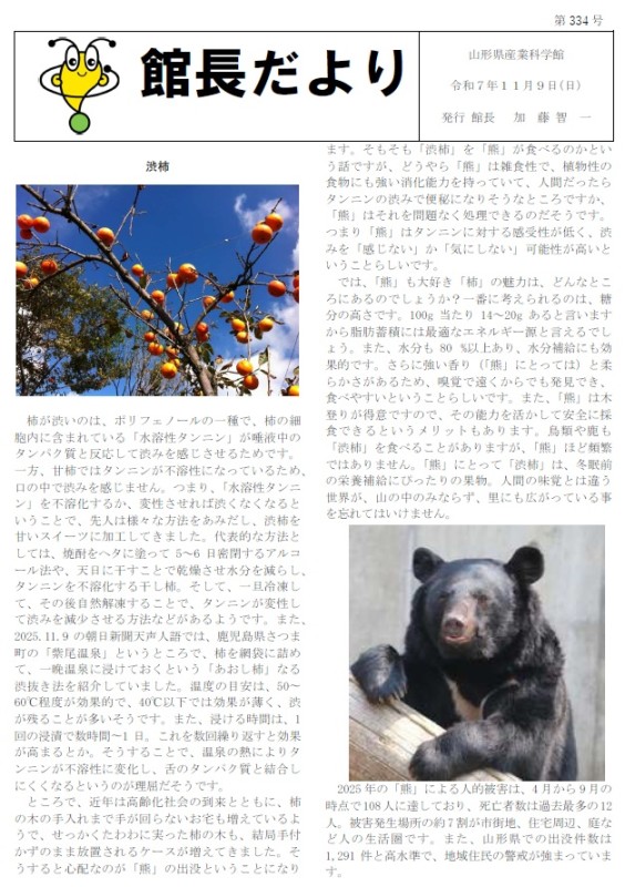 11月9日(日)発行の「館長だより」第334号を掲載します