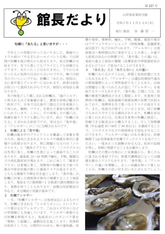 11月13日(木)発行の「館長だより」第337号を掲載します