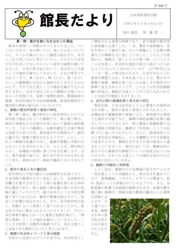 11月16日(日)発行の「館長だより」第340号を掲載します