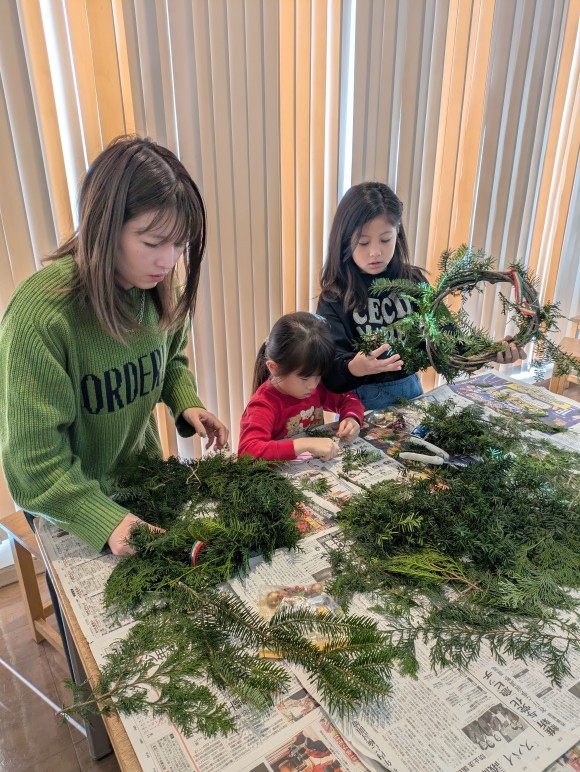 今日のワークショップは、NPO法人環境ネットやまがたによる「クリスマスリース作り」です