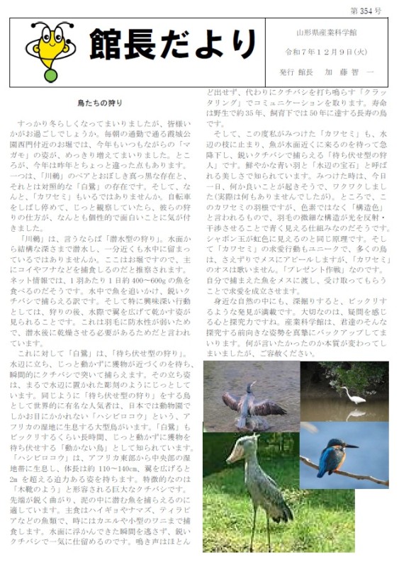 12月9日(火)発行の「館長だより」第354号を掲載します
