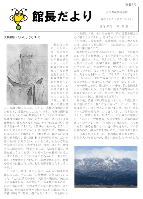 12月20日(土)掲載の「館長だより」第359号を掲載します