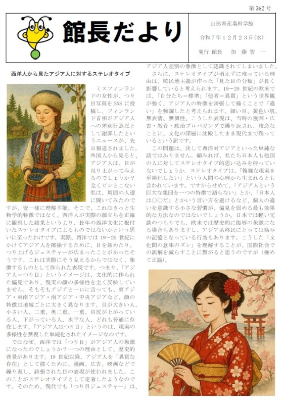 12月23日(水)発行の「館長だより」第362号を掲載します
