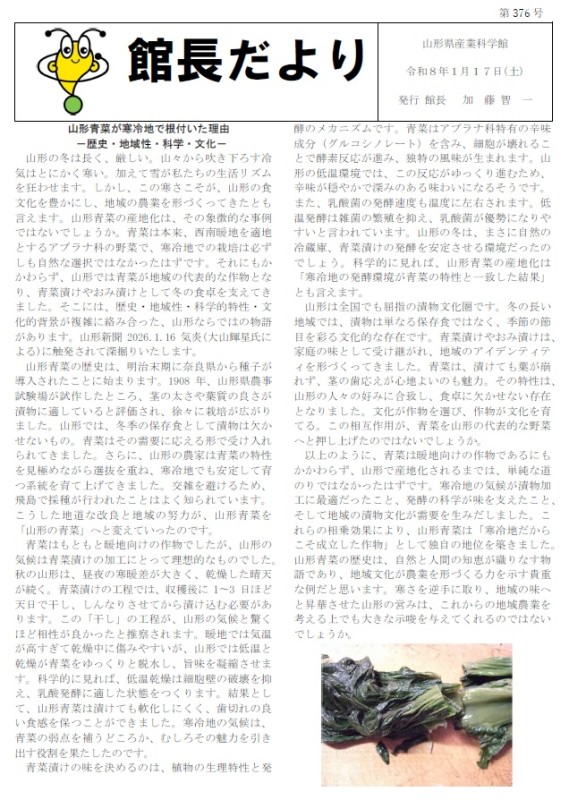 1月17日(土)発行の「館長だより」第376号を掲載します