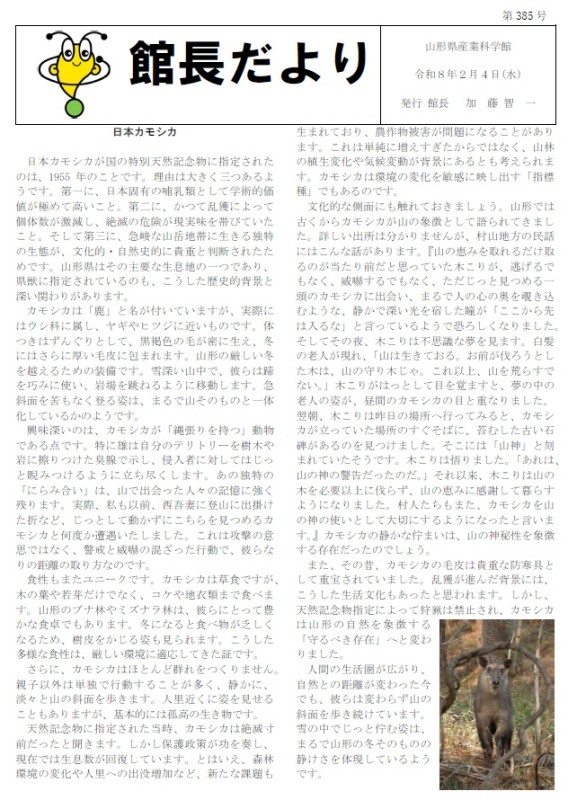 2月4日(水)発行の「館長だより」第385号を掲載します