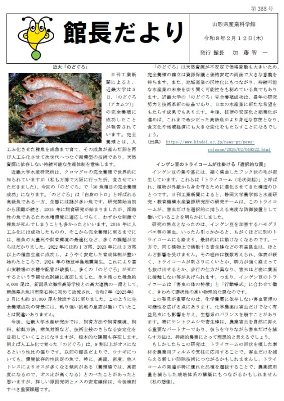 2月12日(木)発行の「館長だより」第388号を掲載します