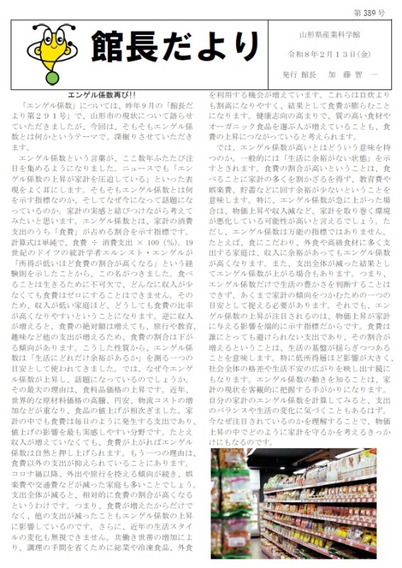 2月13日(金)発行の「館長だより」第389号を掲載します