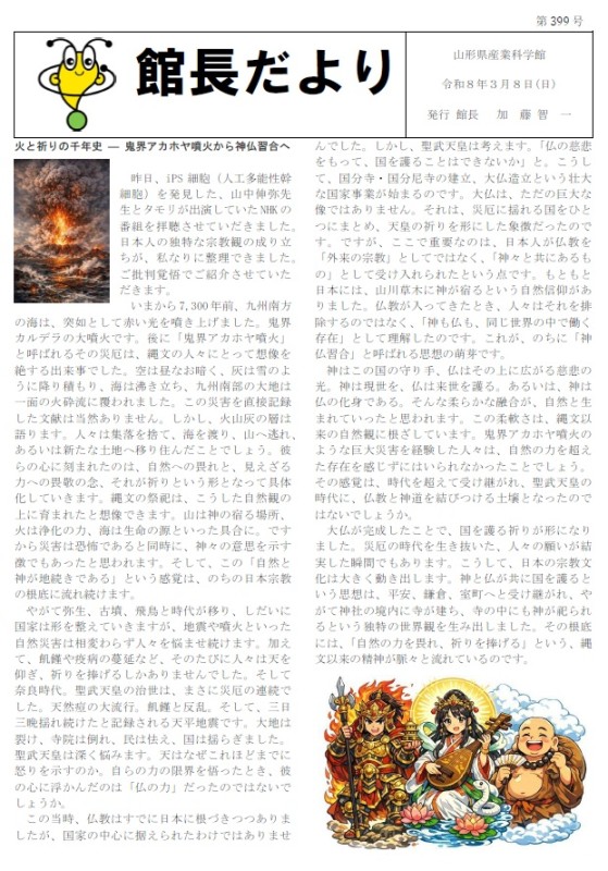 3月8日(日)発行の「館長だより」第399号を掲載します